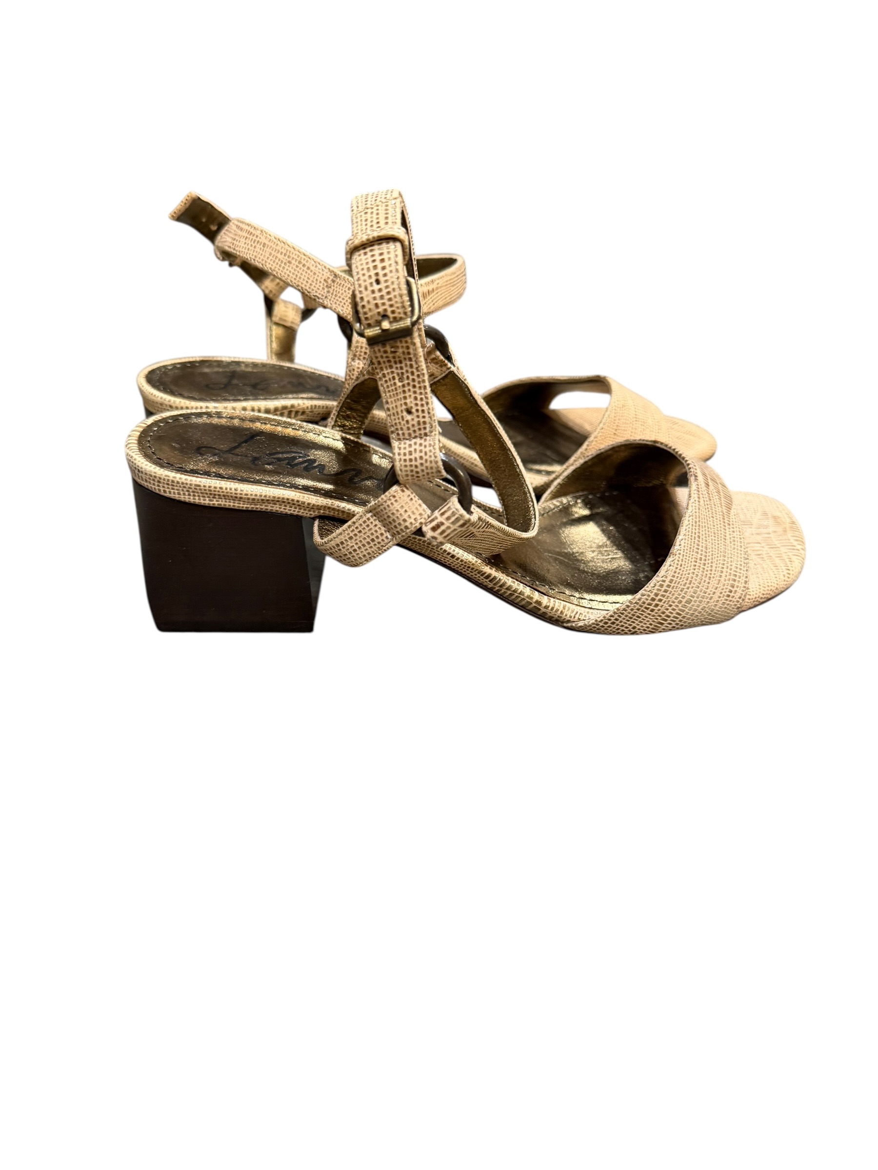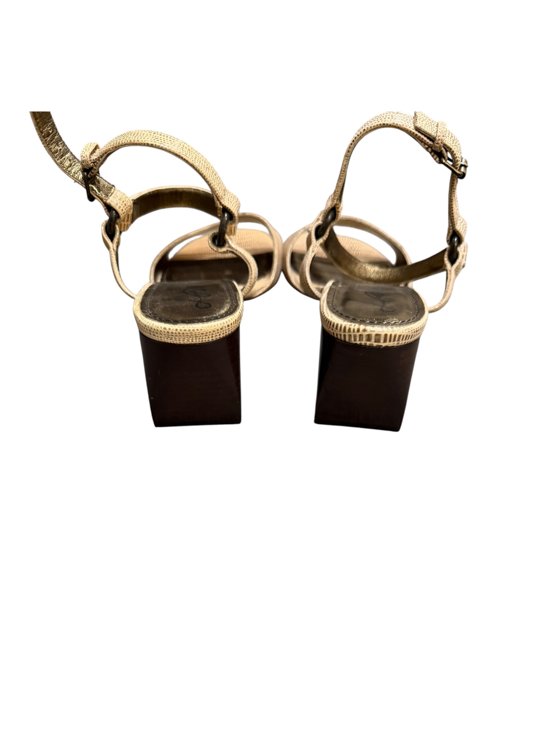 Lanvin Gold Leather Block Heel Sandals Ankle Strap Made in Italy