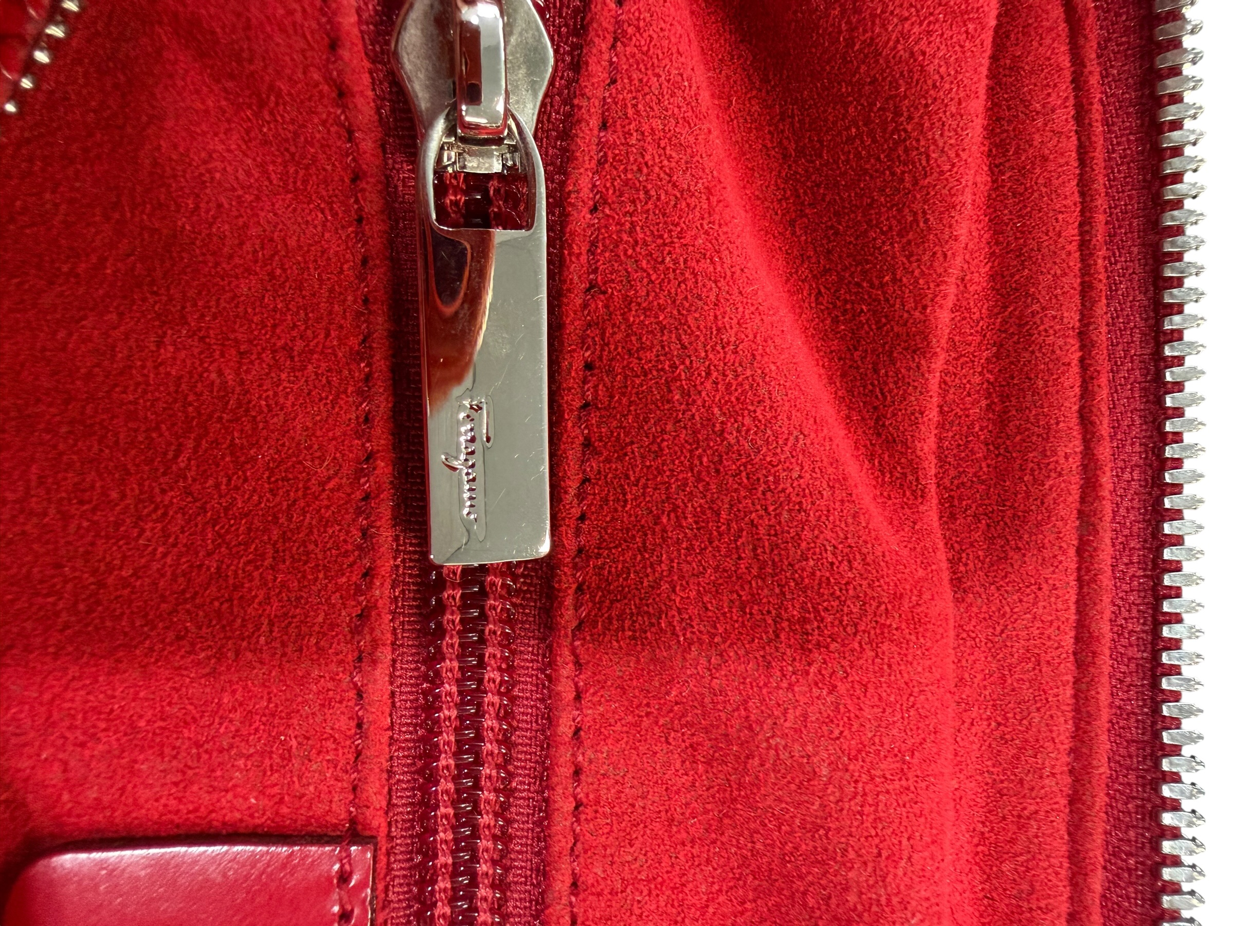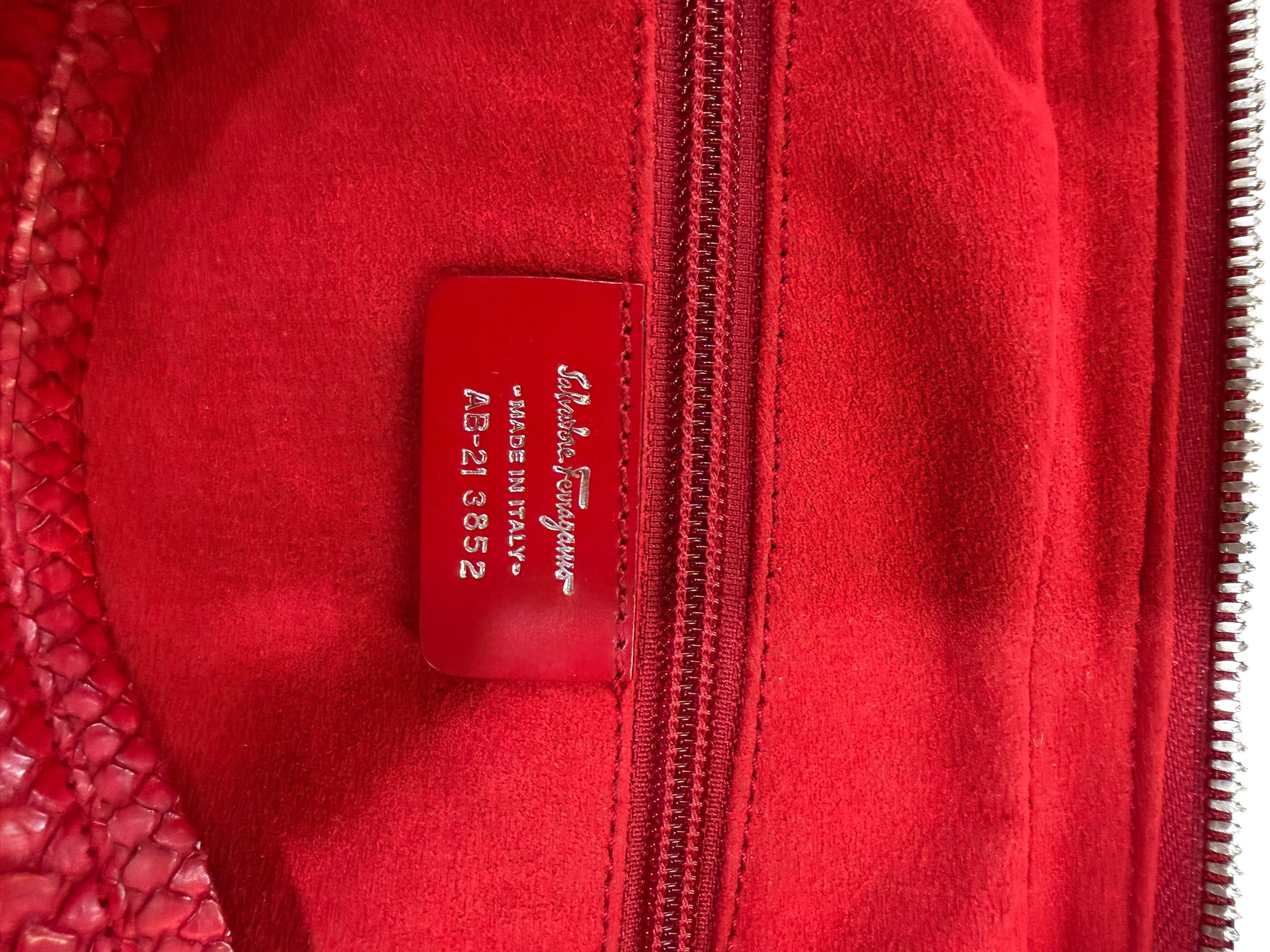 The bag offers a secure zip-top closure and a spacious interior for daily essentials. A timeless luxury piece that reflects Ferragamo craftsmanship and Italian design heritage.